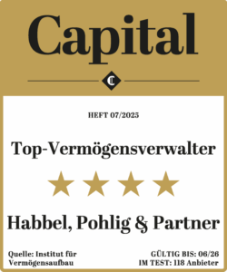 Ihre Sicherheit hat höchste Priorität. Ihr Vermögen liegt zu jedem Zeitpunkt auf einem persönlichen Depot bei einer unserer namhaften deutschen Partnerbanken (z. B. der V-Bank). Habbel, Pohlig & Partner hat lediglich eine Verwaltungsvollmacht, um für Sie Transaktionen durchzuführen. Zudem sind Ihre Wertpapiere als Sondervermögen rechtlich vor einer Insolvenz geschützt.
